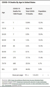 We use COVID mortality data from the CDC to determine the risk of death from COVID